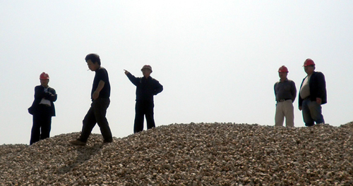 现场勘查水稳站的筹建和料场的布局