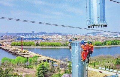 本报烟台讯 4月11日,中铁四局七分公司莱(西)荣(成)二标项目启动全线首条220千伏高压线停电迁改工作。