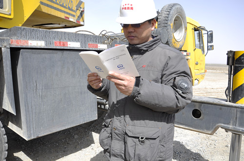 4月4日,在甘青11标项目经理部工地,不管是无砟轨道施工现场还是路基附属施工现场,你总能看到戴着安全帽的现场带班人员、技术人员、试验人员人手一本“小人书”时不时翻翻看看,做着记录。