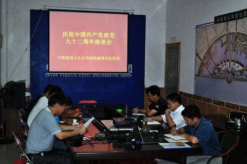 6月30日晚七点,妈祖城项目部党支部在驻地召开了庆祝建党92周年座谈会,项目部全体党员和入党积极分子参加了会议。