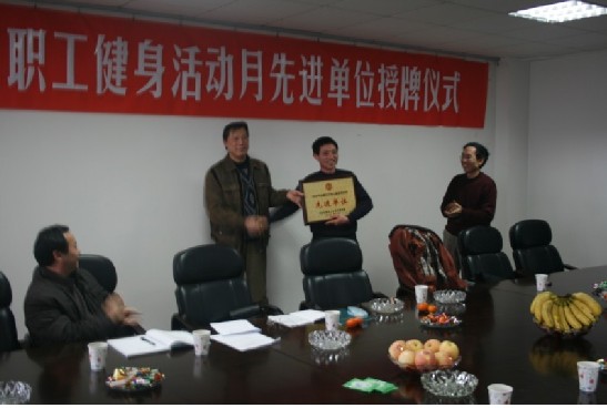 | 本网合肥讯 1月19日下午,安徽省总工会宣教处处长兼安徽省体育联合会会长刘芳柏为中铁四局七分公司授予全国亿万职工健身活动月先进单位。中铁四局体协秘书长安保田出席授牌仪式并讲话,公司工会主席张传国、纪委书记郑贤田及机关党群部门主要负责人出席座谈会 授牌仪式上,刘处长对中铁四局七分公司荣获“全国亿万职工健身活动月先进单位”称号表示祝贺。他说,中铁四局七分公司群众体育基础非常扎实,多年来,扎实开展全民健身活动,有针对性地结合行业特点,精心策划活动方案,开展了一系列富有成效的文化体育活动。荣誉的取得是中铁四局七分公司领导高度重视的结果。希望中铁四局七分公司以此次授牌仪式为一个新的起点,继续发扬群众体育工作的传统,作好全民健身工作。 公司工会主席张传国在授牌仪式上说,七分公司得到此次殊荣,是荣誉也是压力,我们将变压力位动力,在全公司积极倡导“健康一个人,幸福一家人”的全民健身理念,因地制宜开展内容丰富、形式多样、职工喜闻乐见的体育健身活动,重视基层单位体育设施建设。进一步增强了公司广大职工的凝聚力,有力的推动了公司全民建设运动的开展,为建设一流的高素质职工队伍发挥更好的促进作用。 全国“亿万职工健身活动月” 活动是中华全国总工会整体部署,安徽省共3家单位获得该荣誉,同时也是唯一一家获得该荣誉的处级单位。 ![]() |