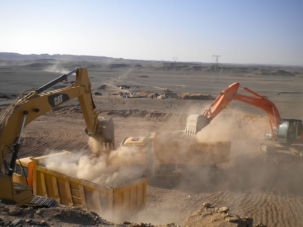 干燥,使许多来十三间房的人很不适应,几乎所有来这里的人都要经历流鼻血、咽喉肿痛等症状。刚建点的时候,工地测量的小伙子们最初把喝上口水当作奢望,现场施工经常为省一方水而绞尽脑汁。茫茫戈壁哪儿来的水源啊!随着土方施工的全面展开,施工用水的缺口重重地压在每个人的心中,四工区自上而下把寻找水源作为能否打胜这场恶仗的关键。大家利用一切时间、一切机会,翻山越岭,挖沟探渠,寻觅到“滴水贵如油”的水源。