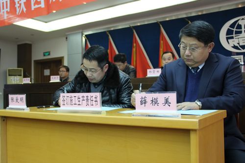 会上,公司总经理薛模美分别与基层单位项目经理签订了《安全质量责任书》、《施工生产责任书》和《清欠责任书》;公司党委书记吴锡君与基层单位项目书记签订了《廉政建设责任书》。
